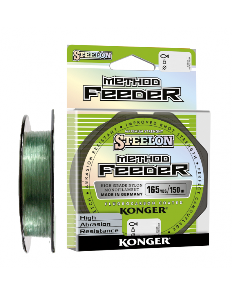 Очень низкая растяжимость, позволяющая точно определять приманку, высокая стойкость к истиранию, отличная прочность на узлах и при линейном разрыве, а также хорошая маскировка на дне. Все эти качества присущи леске Steelon Method Feeder.