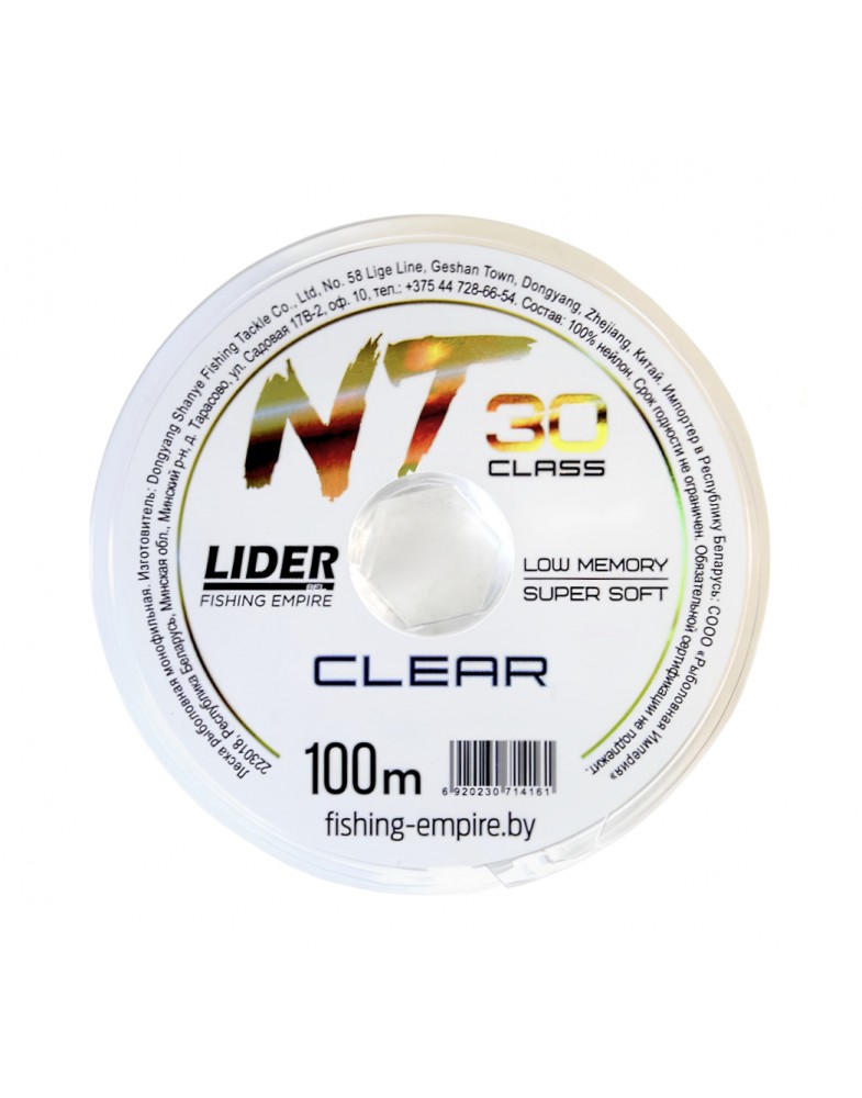 Рыболовная монофильная леска от бренда LIDER BEL произведенная из высококачественного нейлонового полимера марки NT30.