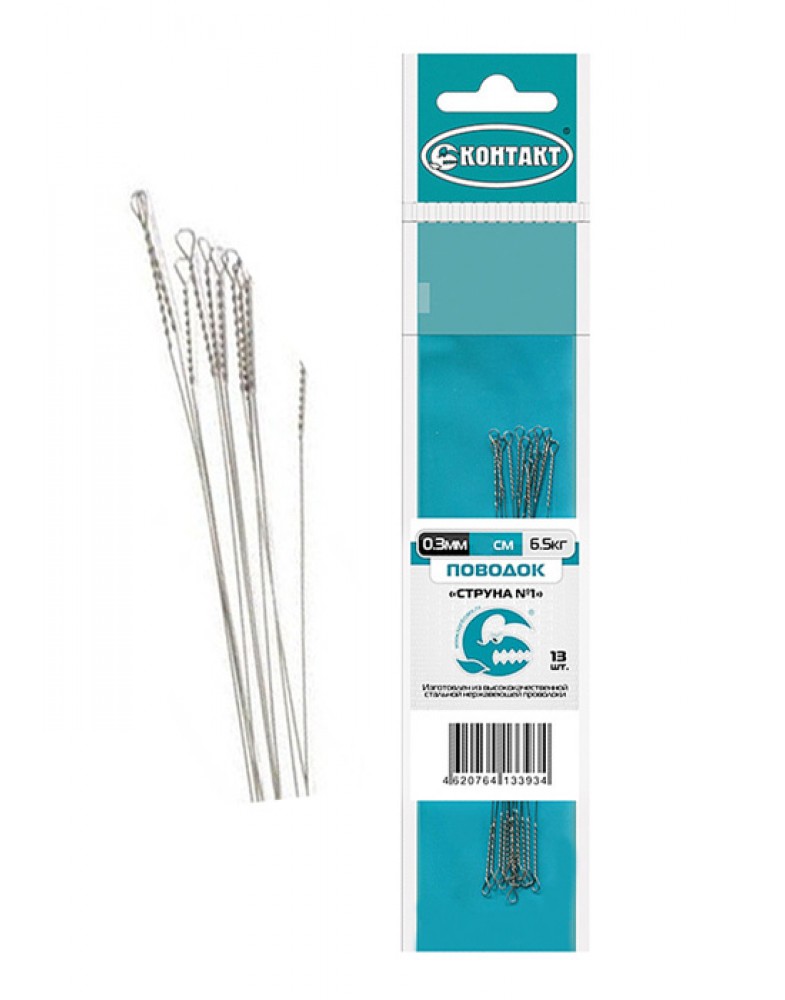 За время своего существования компания Контакт заслужила репутацию очень надежного производителя. Самыми известными товарами в ассортименте бренда являются различные варианты поводков. В том числе популярные поводки из стальной нержавеющей проволоки «Струна». Поводки отличаются достаточно качественной скруткой с обеих сторон и пользуются высокой популярностью среди отечественных рыболовов. Выпускаются в различных модификациях.