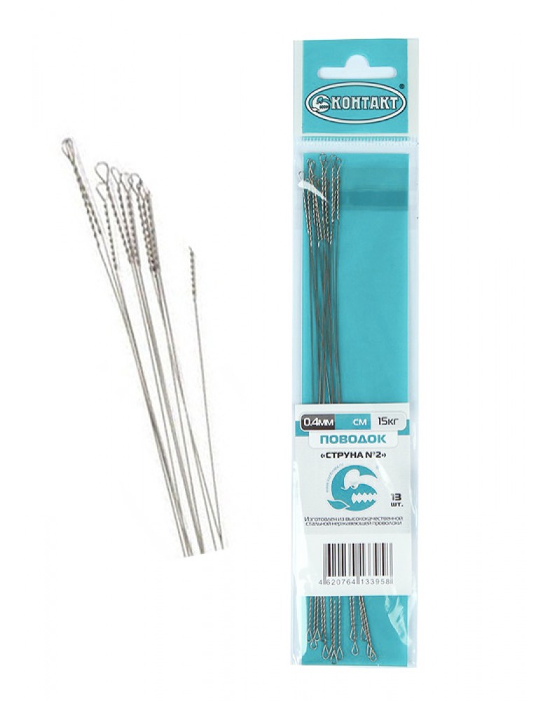 За время своего существования компания Контакт заслужила репутацию очень надежного производителя. Самыми известными товарами в ассортименте бренда являются различные варианты поводков. В том числе популярные поводки из стальной нержавеющей проволоки «Струна». Поводки отличаются достаточно качественной скруткой с обеих сторон и пользуются высокой популярностью среди отечественных рыболовов. Выпускаются в различных модификациях.