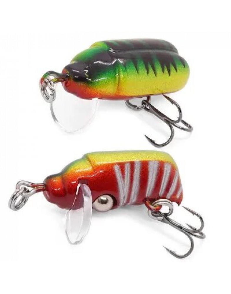 По форме воблер выполнен по образу и подобию жука и в отличие от большинства приманок на его теле отсутствуют глаза, но снизу имеется шарик, служащий одновременно огрузкой и точкой прицеливания.