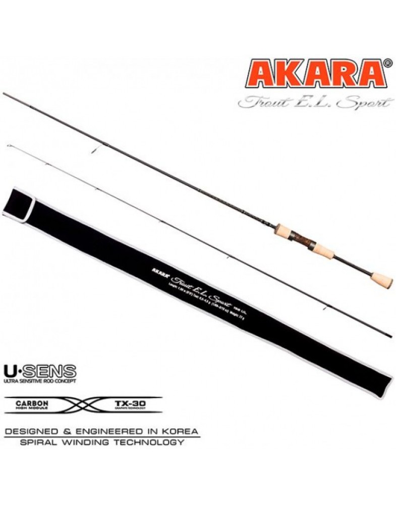 Коллектив компании Akara под руководством Чемпиона России по ловле прудовой форели Евгения Лебедева, разработал и создал спиннинговое удилище Trout EL Sport для ловли форели. Удилище выпускается с удобной разнесенной рукоятью из пробки, оснащенной надежным катушко-держателем. Удилище отличается высокой чувствительностью и минимальным весом бланка. Бланки удилищ выполнены из высоко-модульного карбона TX-40 (50-ton) производства Японского концерна Toray. Хлыст удилища имеет комбинированную конструкцию - тубуляр+солид. Такая конструкция позволяет наиболее чутко контролировать приманку малых весов. Строй удилища средний. Тест удилища от 0,5 до 4,5 грамм.
