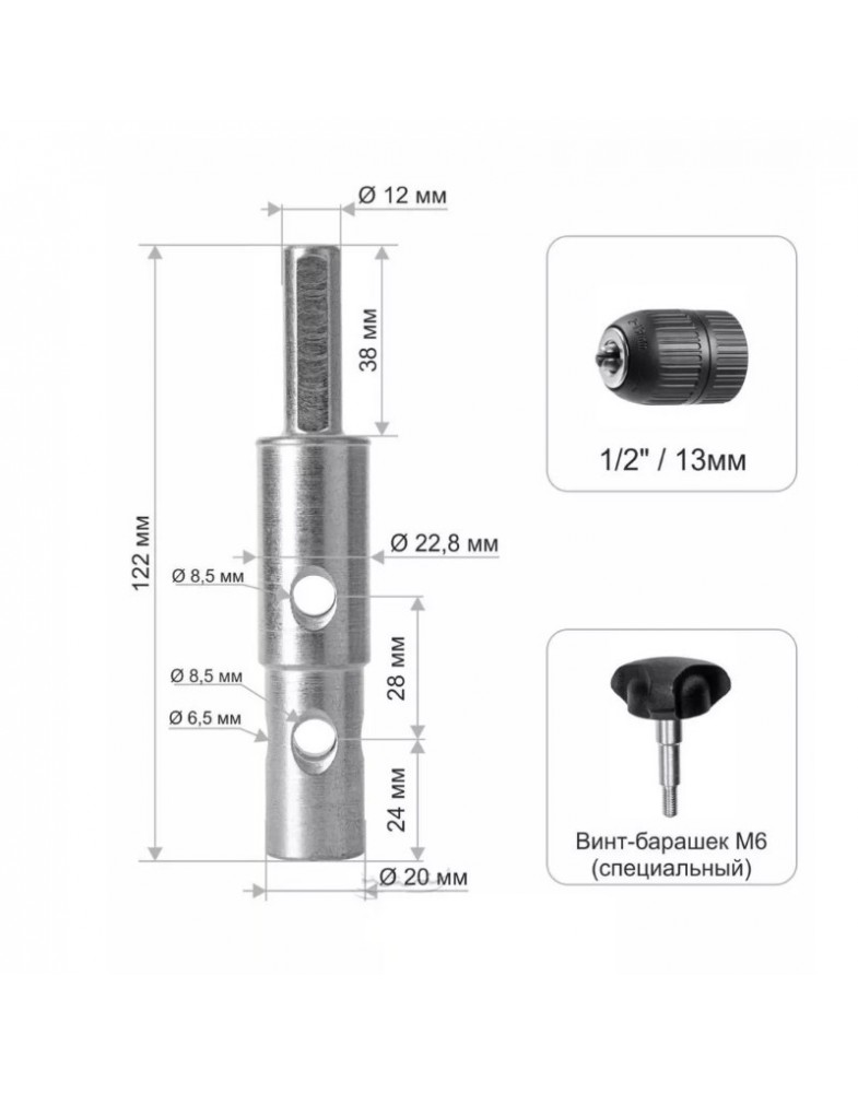 Адаптер для ледобура "Тонар" d20/23 T-ASH-2023 под шуруповерт. С помощью шуроповерта, данного адаптера и шнека можно легко сверлить лунки, затрачивая на это минимум усилий и времени. Улучшенная двухступенчатая конструкция выходного вала адаптера имеет диаметры 20 и 22,8 мм (измененные размеры позволили минимизировать зазоры в соединении вал/втулка в шнеке, адапторе и удлинителях). Хвостовик адаптера имеет усиленную трехгранную рабочую поверхность (диаметр хвостовика 12 мм) и ограничительный бурт для защиты от выпадения при ослаблении затяжки патрона. Хвостовик адаптера закрепляется в патрон шуруповёрта. Посадочный диаметр патрона шуруповерта - 1/2 дюйма (13 мм). Эксплуатировать адаптер допустимо с шуруповертом с напряжением 18В и максимальным крутящим моментом не более 120 Нм. Рекомендуем сделать ограничитель для адаптера, так как без него очень высок риск утопить шнек в лунке. Производитель не несет ответственности за утерю шнека в подобном случае.