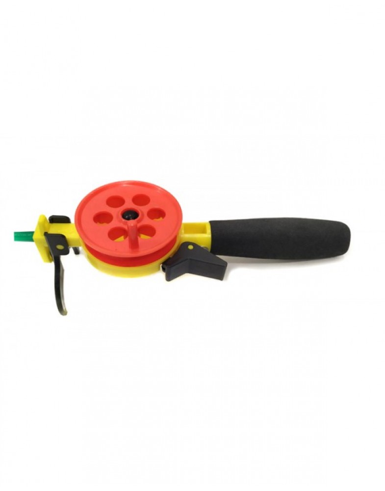 Удобная зимняя удочка с неопреновой ручкой и откидными ножками. Для спуска катушки установлена клавиша. Материал ABS
