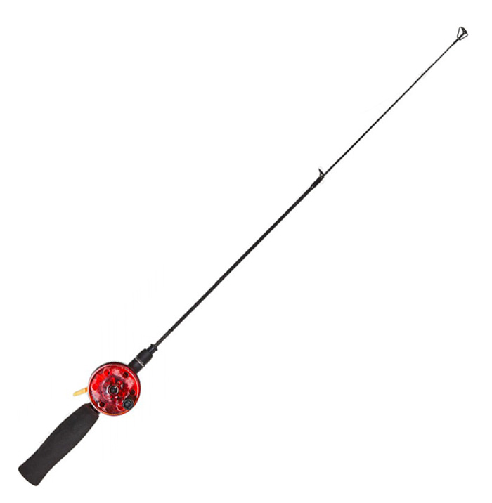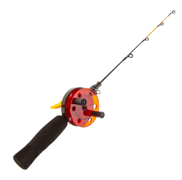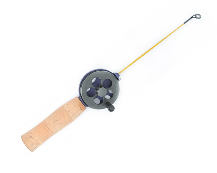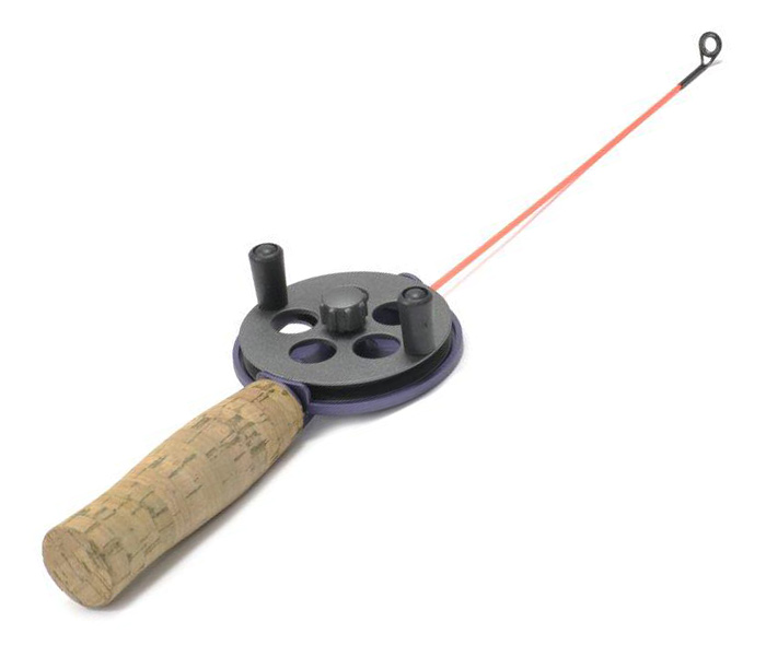 Удочка для зимнего блеснения с катушкой из морозостойкого пластика, оборудованной удобным клавишным..